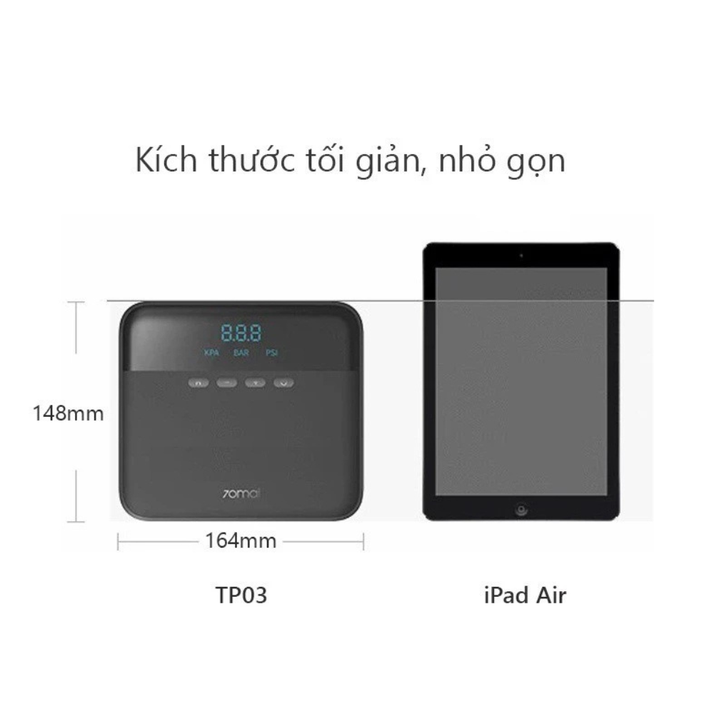 - Thiết Kế Nhỏ Gọn & Tiện Lợi: Kích thước 164 x 148 x 54 mm, nặng chỉ 0.95kg, dễ dàng cất giữ trong xe. Dây dài 3.2m và ống bơm 0.7m (tổng 3.9m) giúp tiếp cận mọi lốp xe.